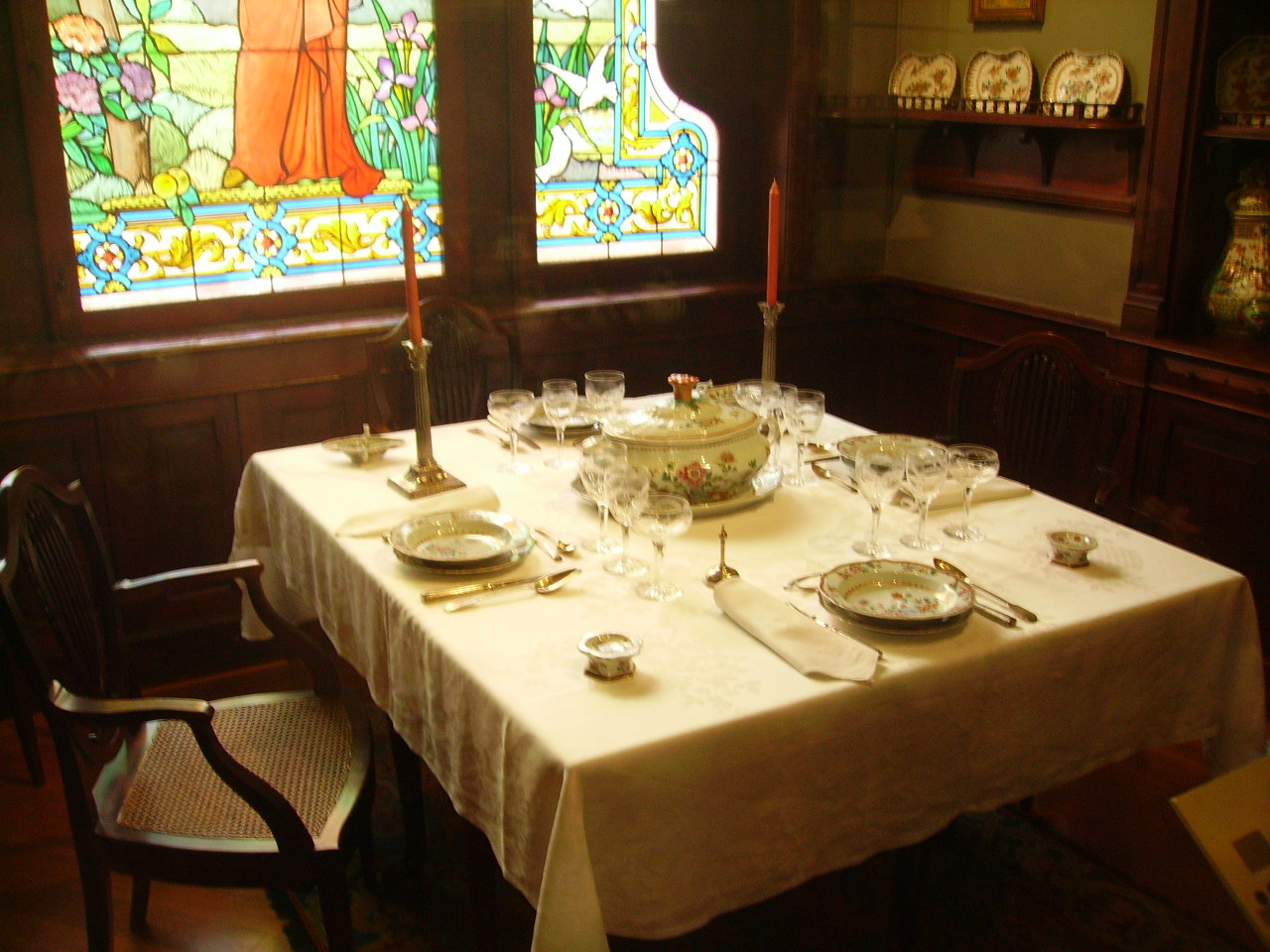 De realçar, igualmente, o vitral, de origem francesa, encomendado para a da sala de jantar e salinha anexa ao atelier.