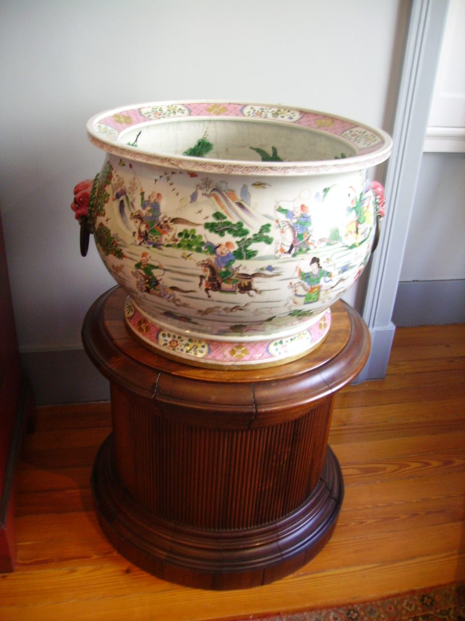 Surgem-nos, depois, exemplares da dinastia Qing (1644-1911) com peças do grupo de “família verde” “família rosa” e “azul soprado” assim como um interessante serviço de jantar, datável do reinado Qianlong, com decoração de motivos vegetalistas.