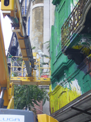Houve quem apelidasse a “intervenção” nos prédios devolutos da Avenida Fontes Pereira de Melo, como “exposição” e assim sendo, bem afastada do ideal dos grafitti e bem perto da natureza da pintura mural, o que eu discordo profundamente. De qualquer forma, gosto mais de ver os prédios degradados da minha cidade assim, do que tapados por panos..